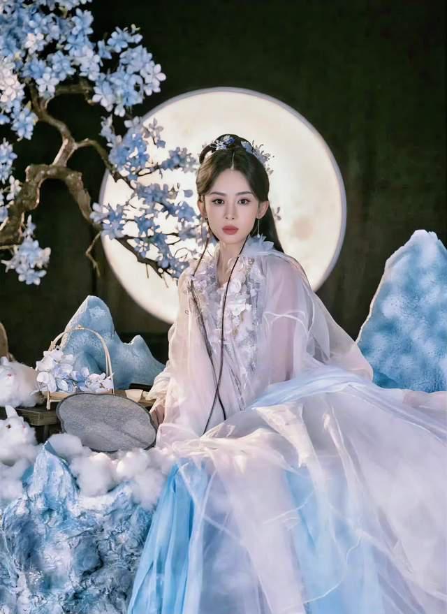 其举止慵懒,更贴近了疏离了人间几千年的嫦娥,其妆发普通,梳着大光明发型,穿蓝色或者粉白色衣裙,一出场,像是画里面走出来的人儿!
